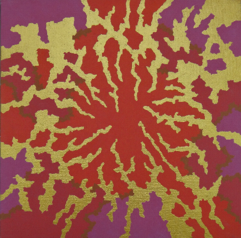 What is dross and what precious metal? Perhaps this small picture is the cupel wherein to assay our notions of aesthetic significance. Here, structural convection, inflamed color and metallic lustre all come together in an analog of the chemistry of fusion. This is essentially a digression, an extrinsic subject, an aesthetic anomaly. Yet, as art, it resonates with anthropomorphic associations. Even without specific human allusion, we interpolate the flux, energy, conatus of organic life. We read the signs of growth and decay because they are immanent in our own mortality. In awe of the awful, vital hope begets the beautiful. In art, unlike astronomy, the fatal, white giant yields the benign, red dwarf.
